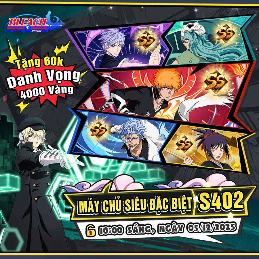 Tưng bừng khai mở Máy Chủ S402 – Bleach Online vào lúc 10:00 ngày 05/12/2025.