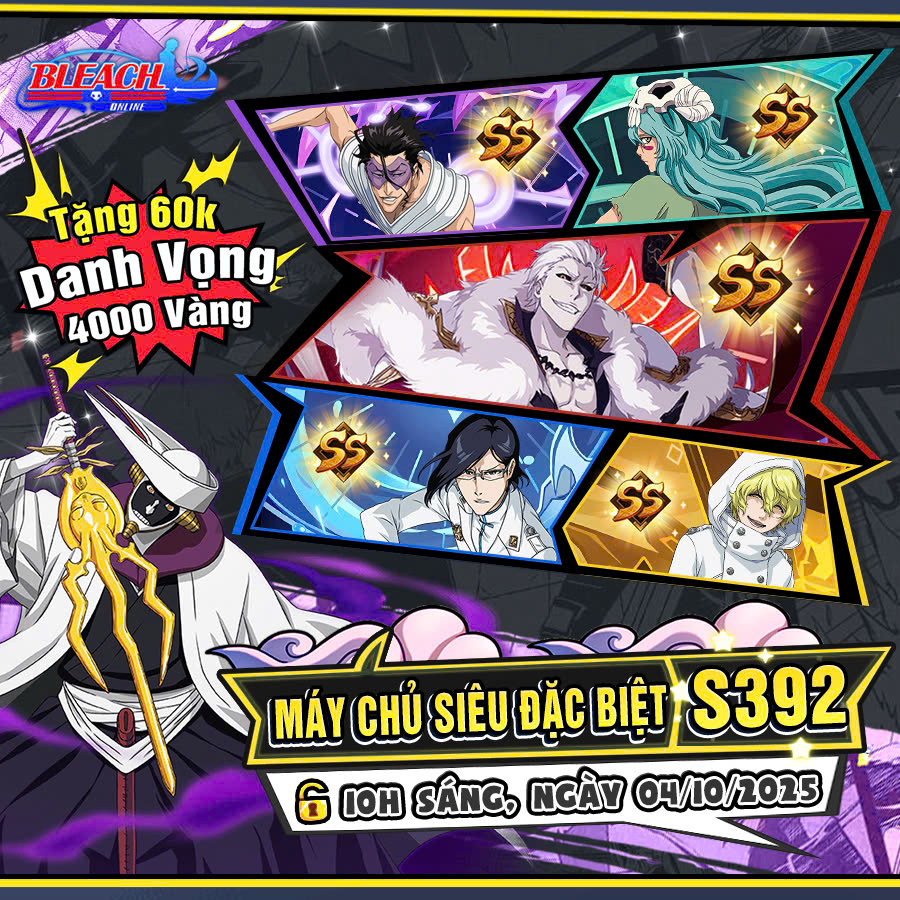 Tưng bừng khai mở Máy Chủ S392 – Bleach Online vào lúc 10:00 ngày 05/10/2025.