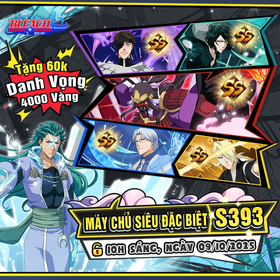 Tưng bừng khai mở Máy Chủ S393 – Bleach Online vào lúc 10:00 ngày 09/10/2025.