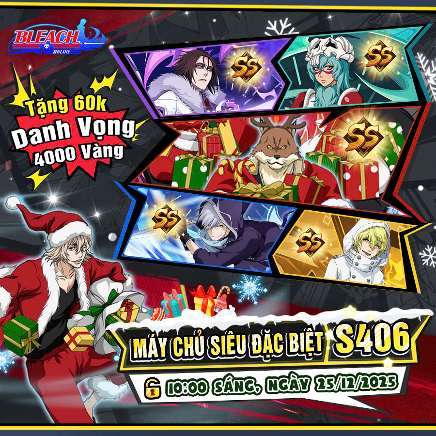 Tưng bừng khai mở Máy Chủ S406 – Bleach Online vào lúc 10:00 ngày 25/12/2025.