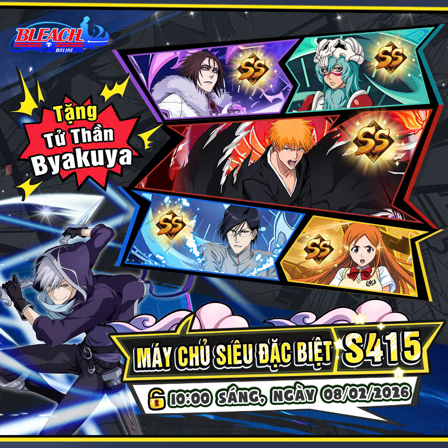 Tưng bừng khai mở Máy Chủ S415 – Bleach Online vào lúc 10:00 ngày 08/02/2026 . Tặng Bakuya UR